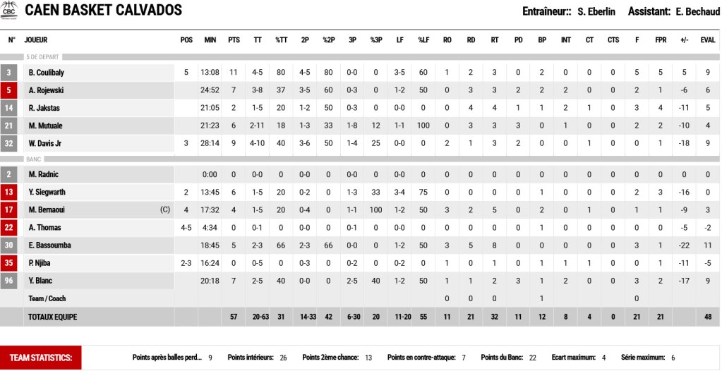 Le Caen BC a perdu le match aller de ce premier tour de Playoffs, ce vendredi 26 avril 2024, au Havre (81-57).