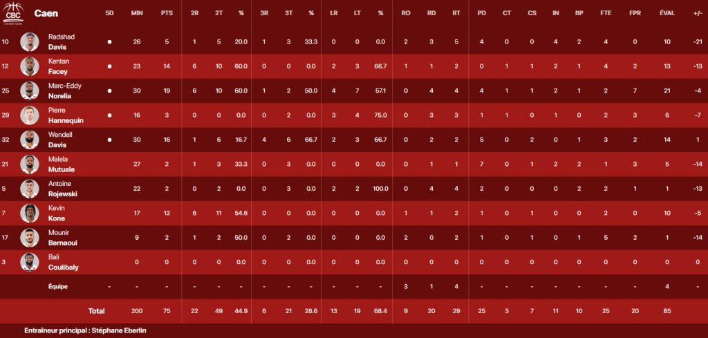 Le match restait serré. Les deux équipes se rendaient coup pour coup. Mounir Bernaoui se signalait par un panier, avant de signer une passe décisive pour Kentan Facey qui montait au dunk (27-24, 13′). Peu de points étaient marqués, jusqu’à ce que Wendell Davis n’accroche la ficelle adverse de loin (32-30, 17′). Et voilà que Sébastien Cape appuyait sur l’accélérateur pour mettre la JAV à +10 (43-33, 19′). Mais Caen finissait bien par un lay-up au buzzer d’Amara Kone (45-38, 20′) .